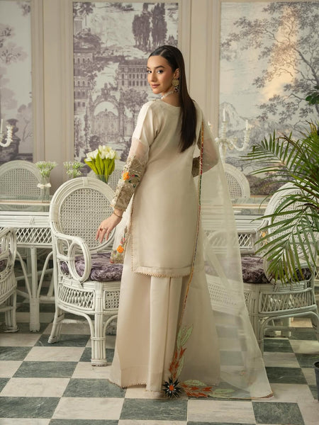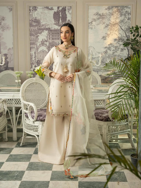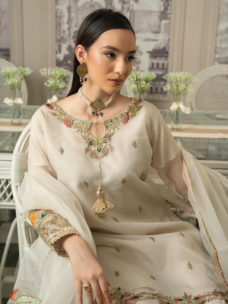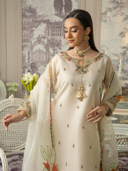 Unveil timeless elegance with ZQ-11 — a stunning 3-piece organza ensemble that blends handcrafted tradition with modern sophistication. The shirt features exquisite hand-made tilla embroidery along the neckline and daman, showcasing masterful craftsmanship that reflects heritage artistry.